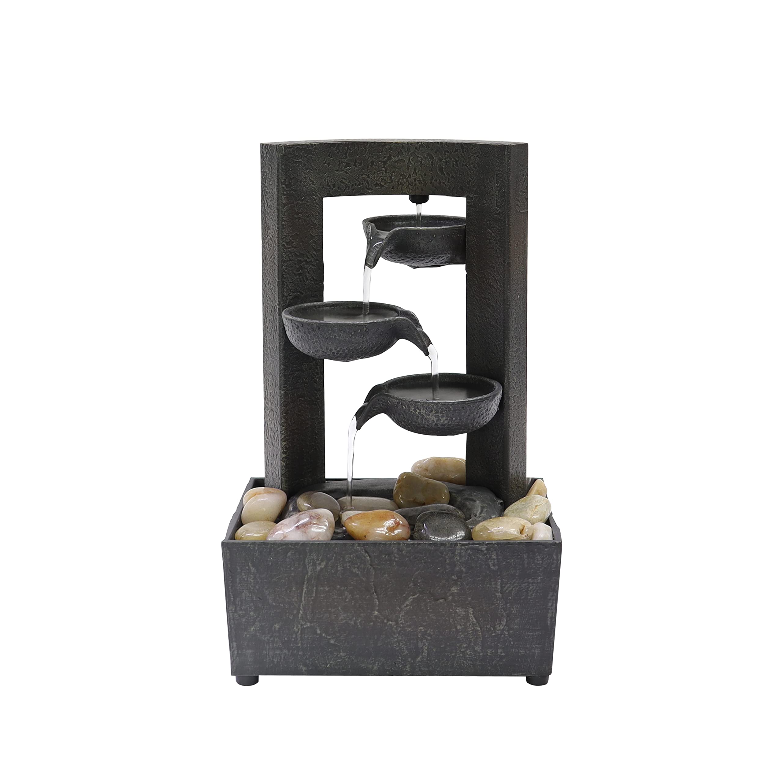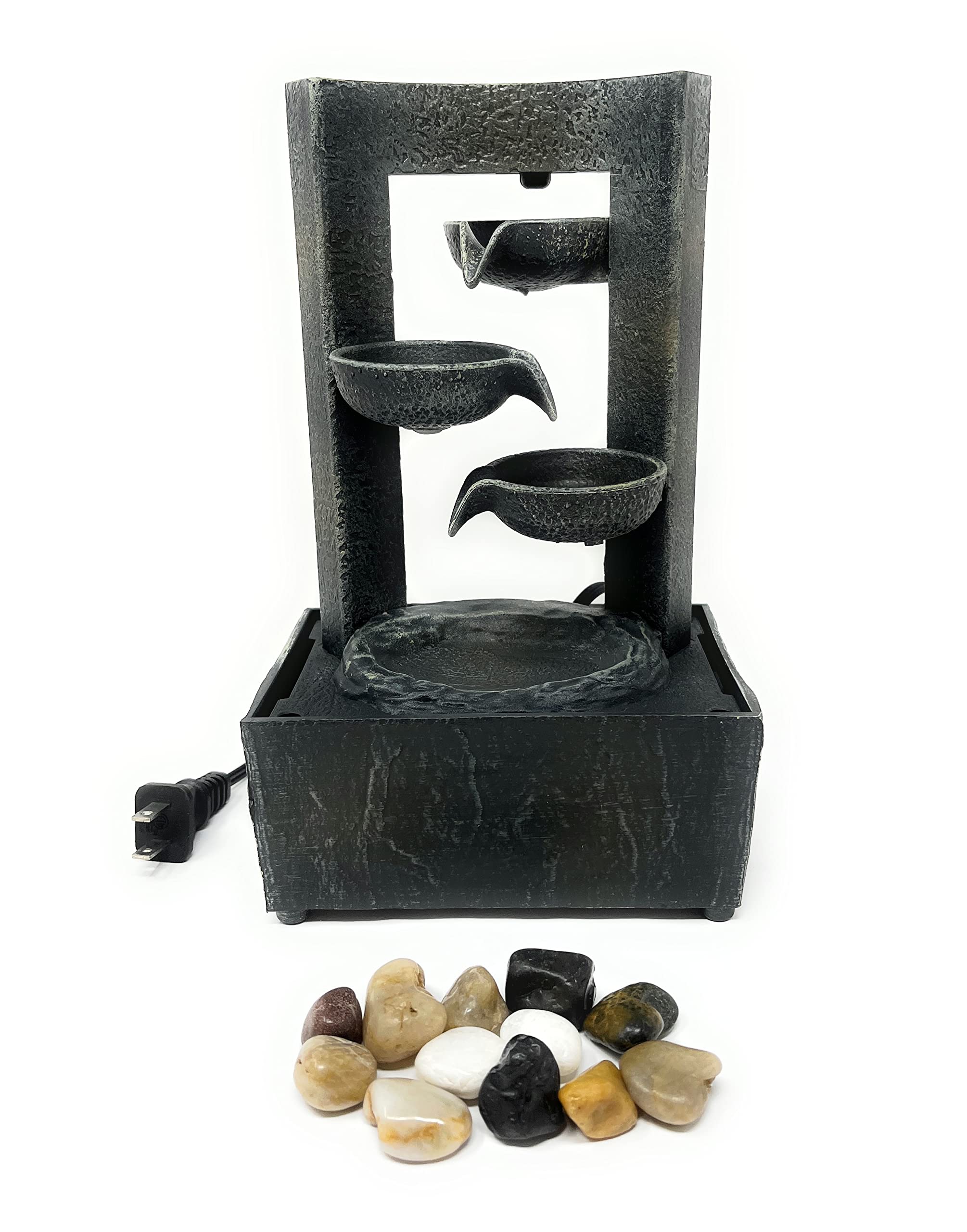 9.6" H Tiered Raining Spout Tabletop Water Fountain with Natural River Rocks (Power Cord Attached)